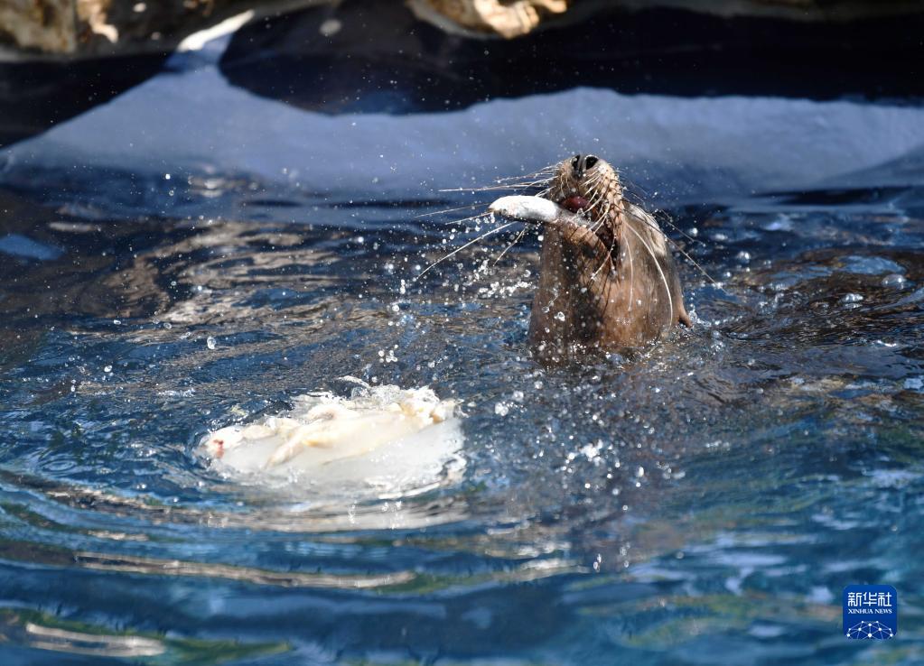 8月26日,一只海獅在意大利羅馬動物園享用冰凍食物。