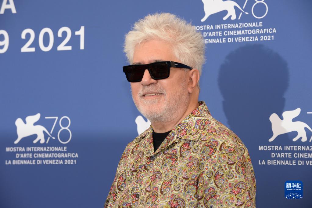 9月1日,在意大利威尼斯利多島的第78屆威尼斯國際電影節現場,導演佩德羅·阿爾莫多瓦爾亮相影片《平行母親》拍照式。