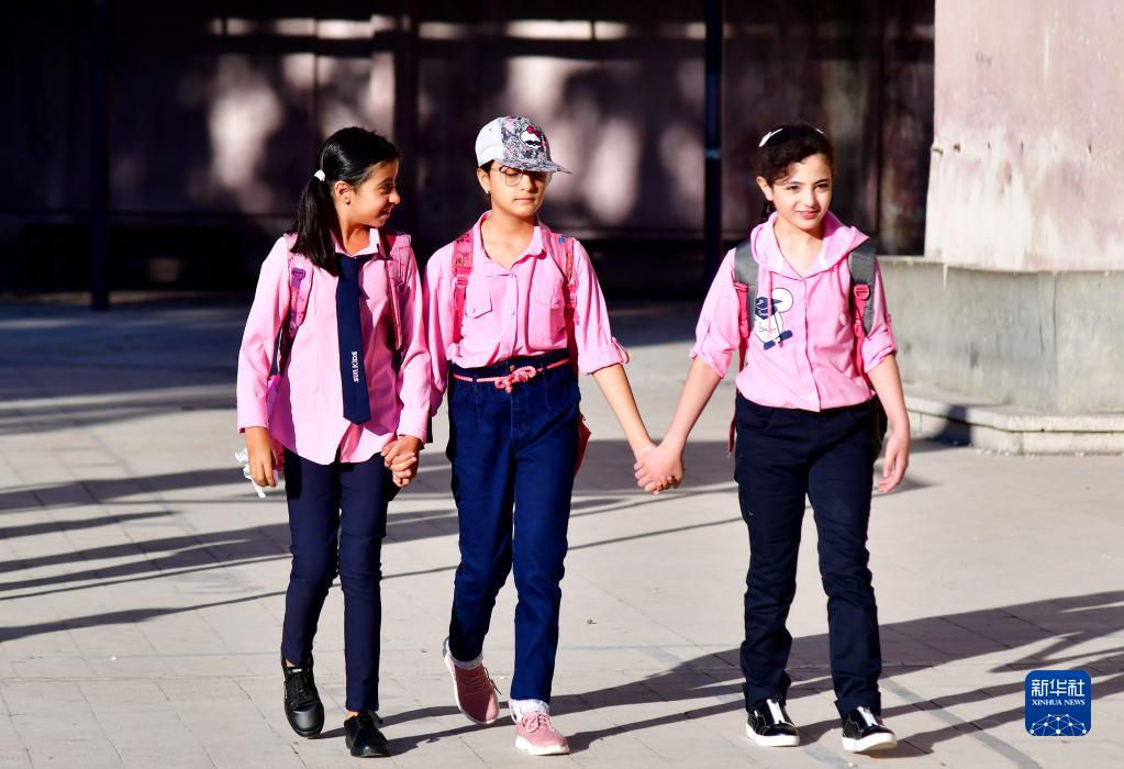 這是9月5日在敘利亞首都大馬士革一所學校拍攝的學生。
