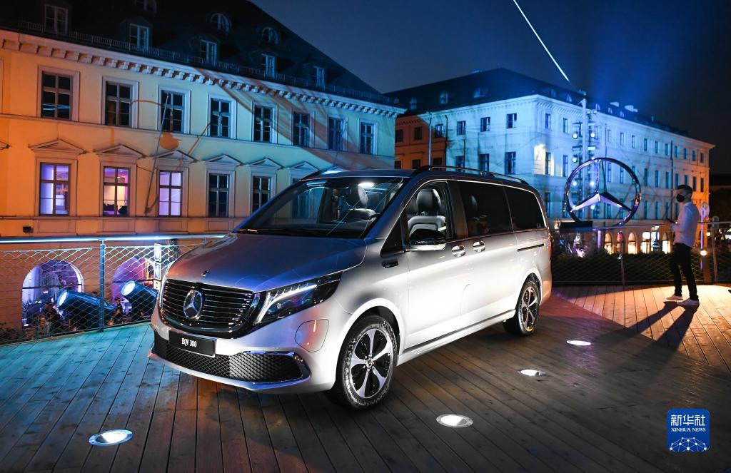 這是9月8日在德國慕尼黑國際車展梅賽德斯-奔馳汽車戶外展區拍攝的一臺梅賽德斯-奔馳EQV 300電動汽車。