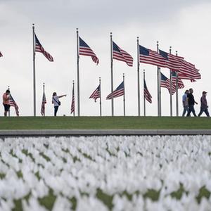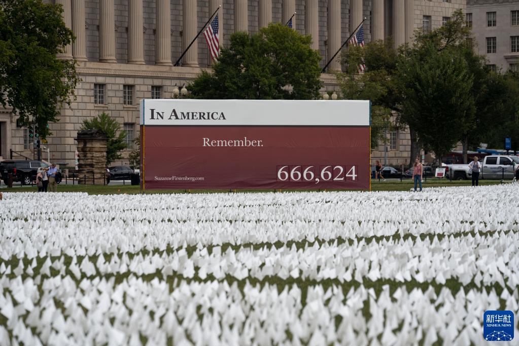 當日起至10月初,超過66萬面白色旗幟擺放在華盛頓紀念碑附近悼念美國超過66萬名新冠逝者。