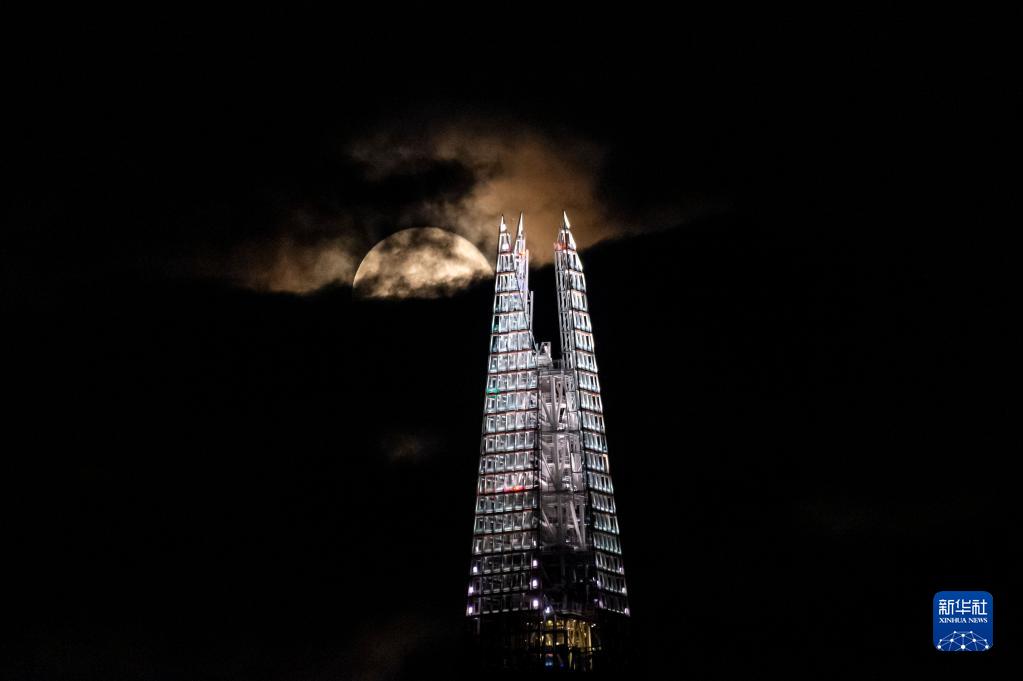 9月21日,滿月在英國倫敦的“碎片大廈”上空升起。