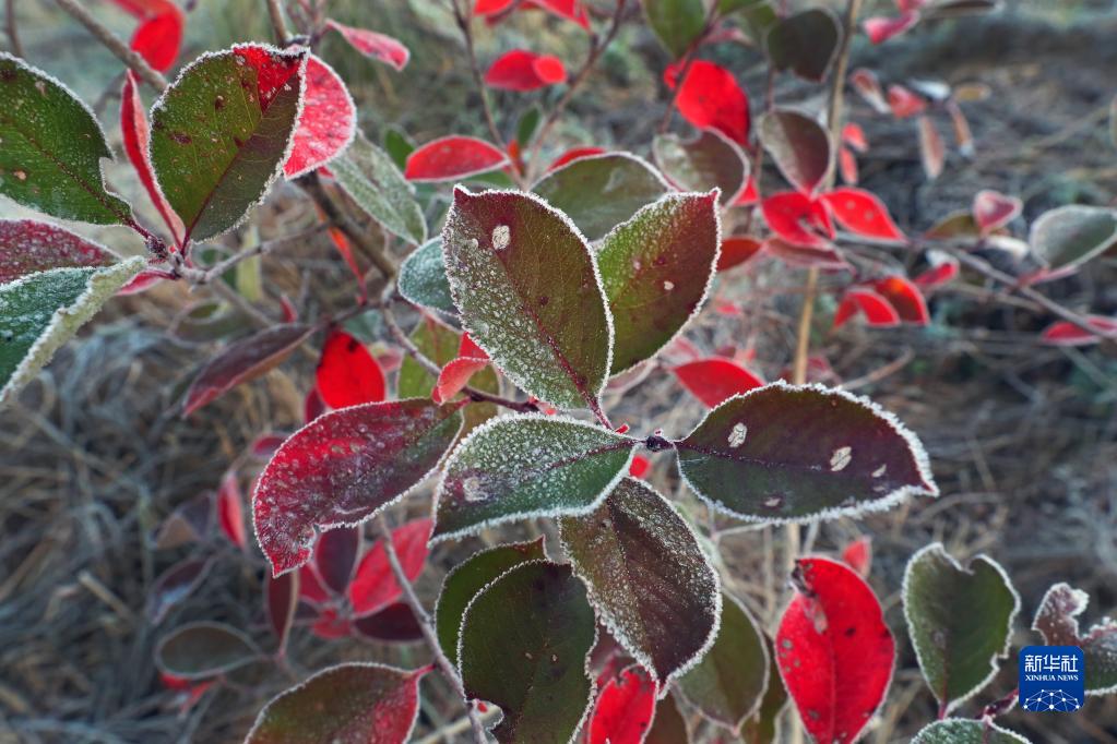 這是在白俄羅斯首都明斯克郊外拍攝的結霜的葉片(10月1日攝)。