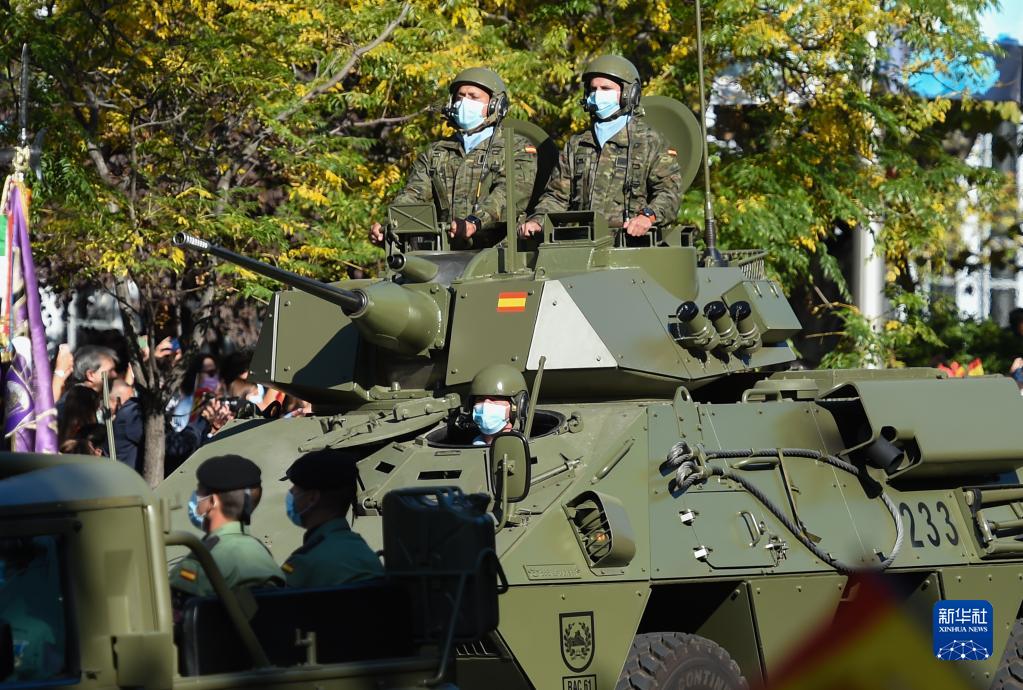 10月12日,軍人在西班牙首都馬德里參加國慶日慶?;顒?。
