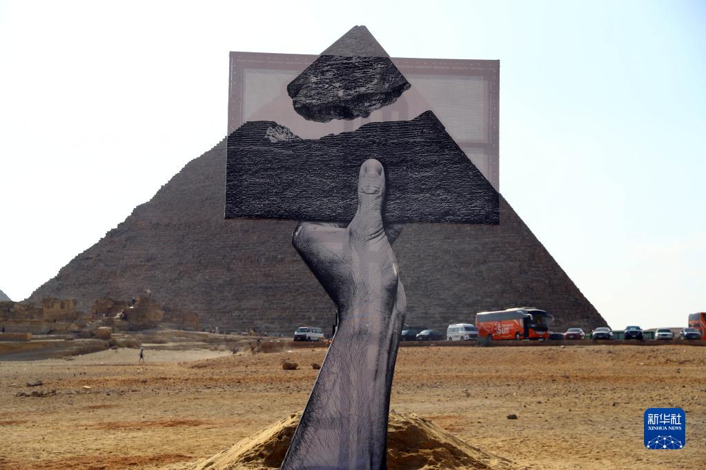 這是10月21日在埃及吉薩金字塔景區舉辦的藝術展上拍攝的一件藝術作品。