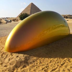 首屆金字塔國際藝術展10月21日在埃及吉薩金字塔景區開幕,來自埃及、美國、俄羅斯等國的十余位藝術家在景區內露天展出了大型雕塑等藝術作品。