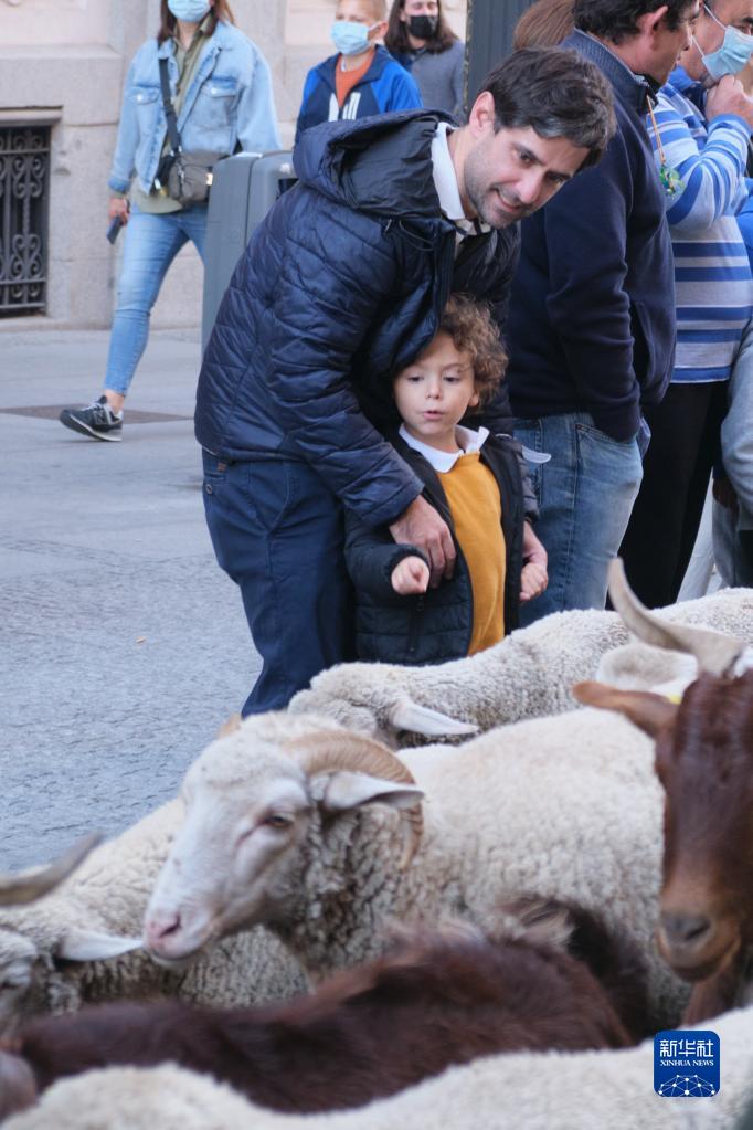 10月24日,人們觀看走過西班牙馬德里市中心的羊群。