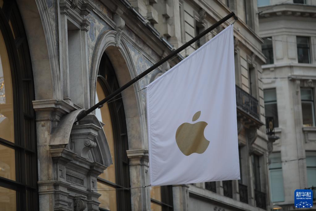 這是11月13日在英國倫敦拍攝的蘋果品牌標識。