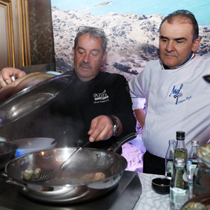 11月29日,在位于巴黎的法國外交部舉行的LA LISTE國際美食榜單揭曉活動現場,一家法國餐廳的大廚現場制作海鮮美食。