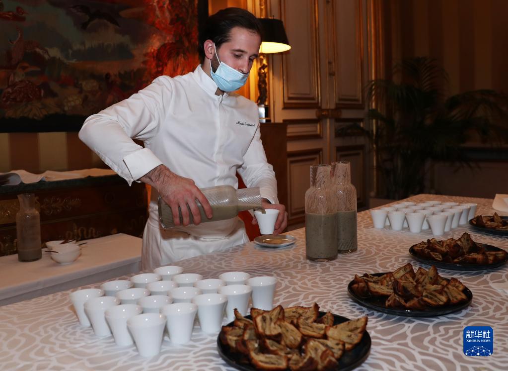 11月29日,在位于巴黎的法國外交部舉行的LA LISTE國際美食榜單揭曉活動現場,大廚為來賓準備美食。