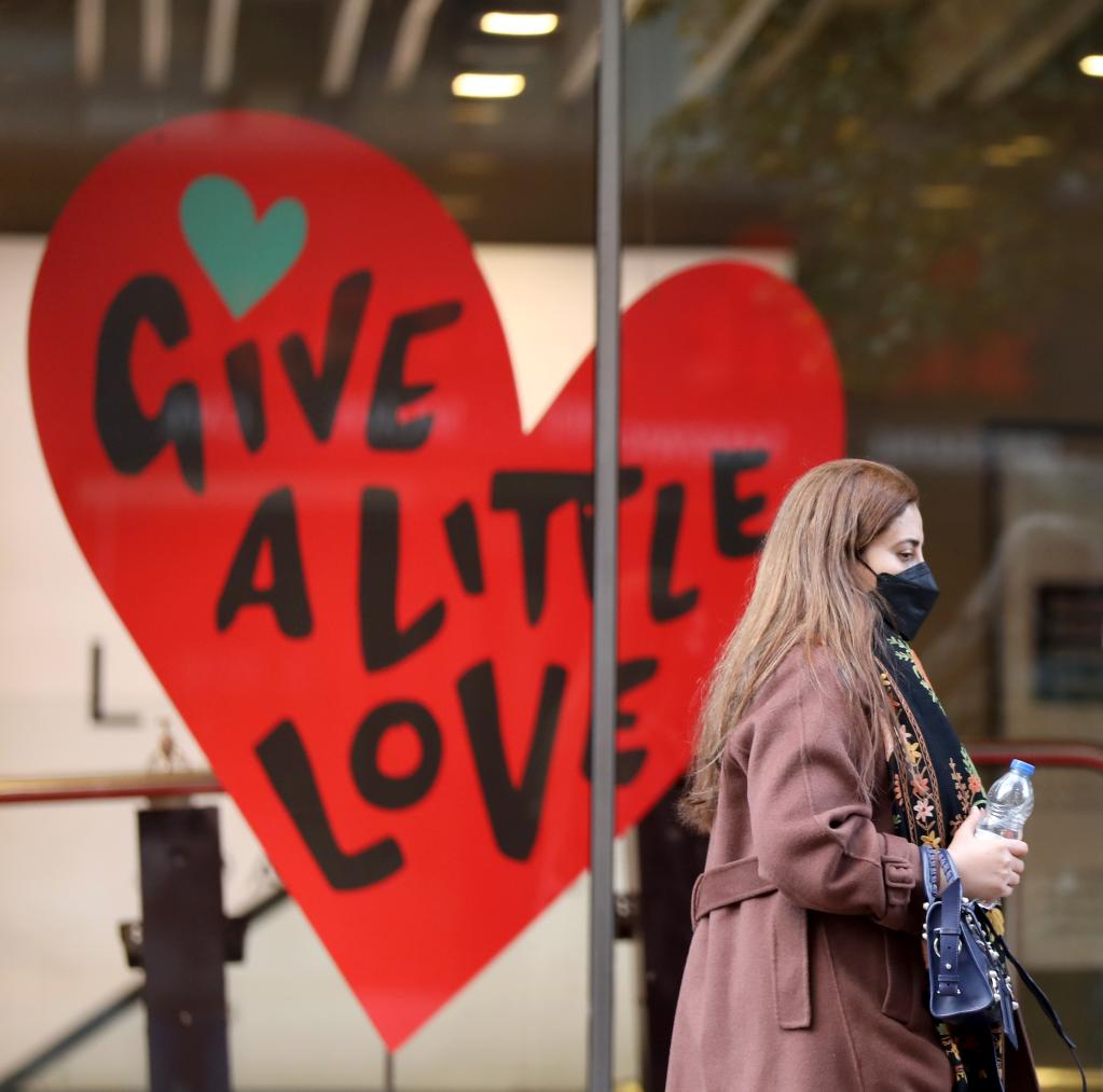 11月25日,一名女子在英國倫敦佩戴口罩出行。新華社記者 李穎 攝