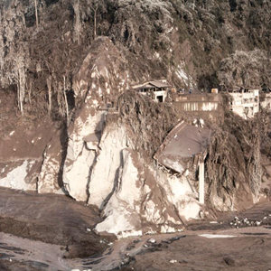 這是12月5日在印度尼西亞爪哇島東部盧馬姜拍攝的被火山噴發物覆蓋的受損橋梁。