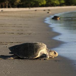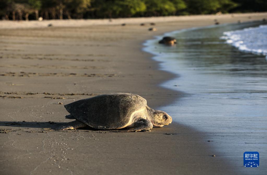這是12月5日在尼加拉瓜南圣胡安灣的拉弗洛爾海灘自然保護區拍攝的海龜。