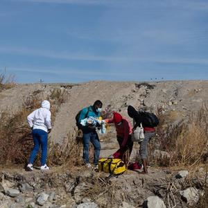 這是12月13日在墨西哥奇瓦瓦州華雷斯拍攝的試圖北上前往美國的移民。