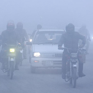 12月15日,學生們走在大霧彌漫的巴基斯坦拉合爾街頭。