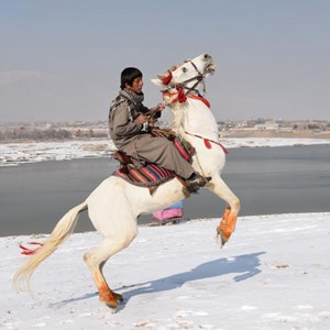 12月16日,一名男子在雪后的阿富汗喀布爾騎馬。新華社發(塞夫拉赫曼·薩菲攝)