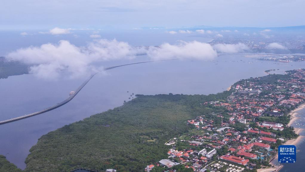 這是12月19日在印度尼西亞巴厘島拍攝的一座跨海大橋(無人機拍攝)。