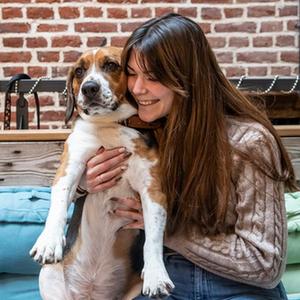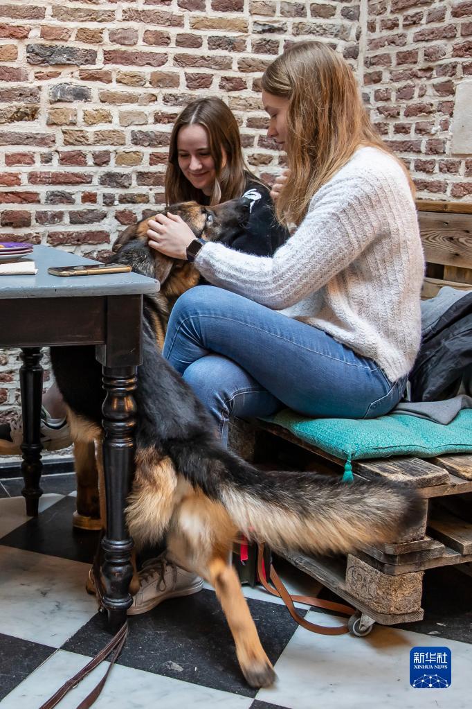 12月22日,在法國北部城市里爾名為Waf Cafe的咖啡館,顧客與狗狗互動。