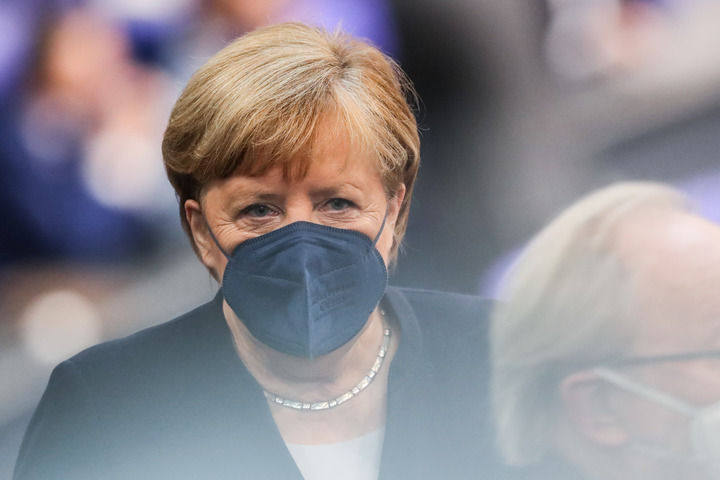12月8日,在德國首都柏林的國會大廈,即將離任的德國總理默克爾在投票議程中。新華社記者 單宇琦 攝