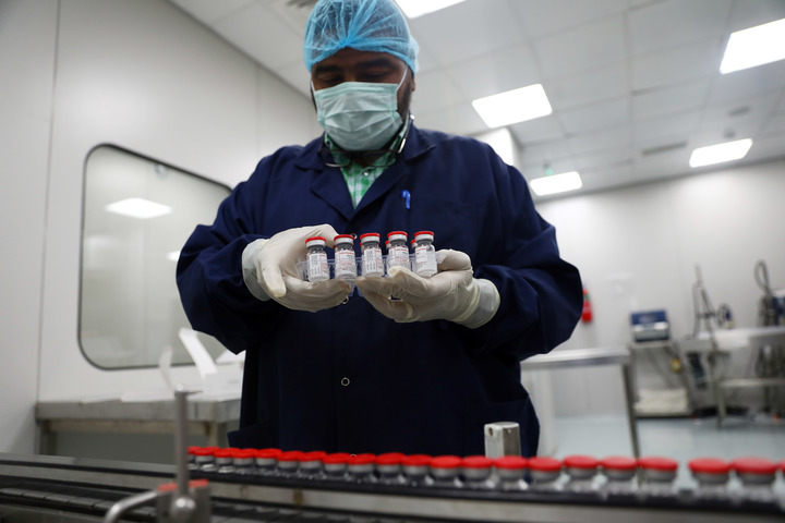 9月6日,工作人員在埃及吉薩的埃及生物制品與疫苗公司疫苗生產廠對貼標的新冠疫苗進行裝盒前準備。新華社發(艾哈邁德·戈馬攝)