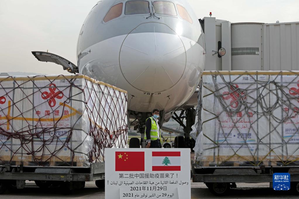 2021年11月29日,中國援助黎巴嫩第二批新冠疫苗運抵貝魯特拉菲克·哈里里國際機場。新華社發(比拉爾·賈維希 攝)
