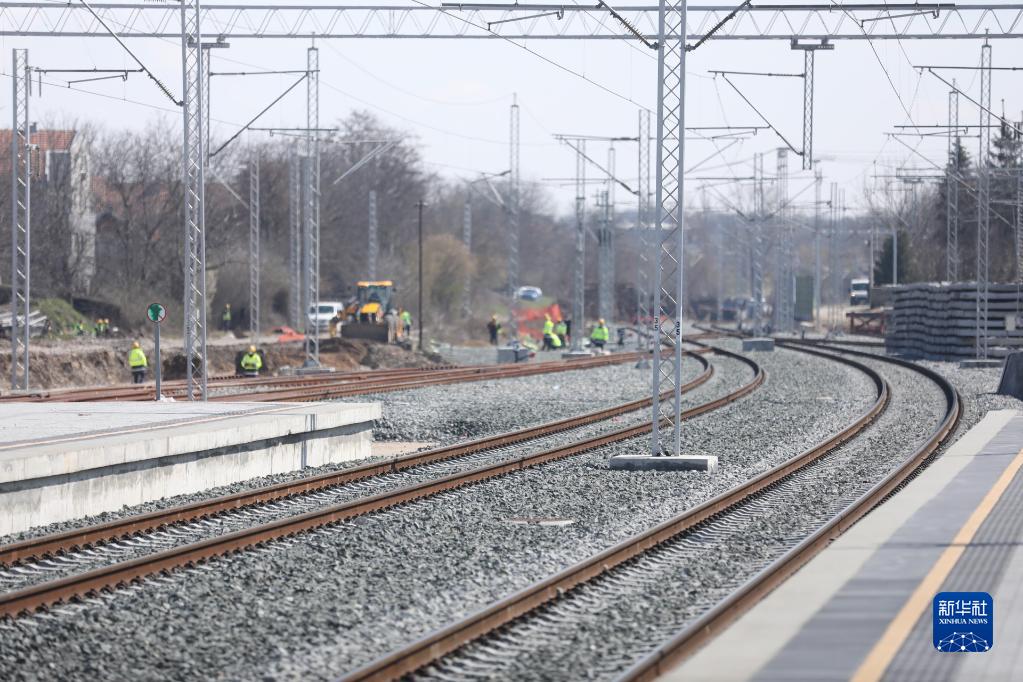 這是2021年3月25日在塞爾維亞貝爾格萊德拍攝的匈塞鐵路項目施工現場。匈塞鐵路全長350公里,是中國-中東歐國家合作的標志性項目,也是中國鐵路技術和裝備與歐盟鐵路互聯互通技術規范的對接。新華社發(王韡 攝)
