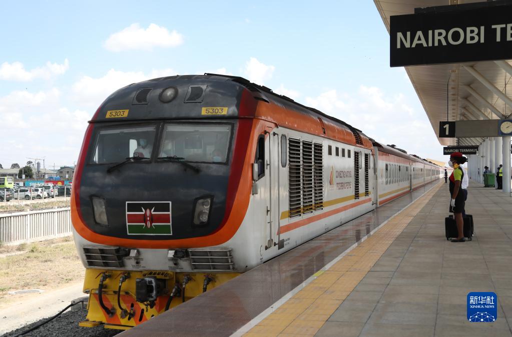 2021年11月17日,由蒙巴薩始發的蒙內鐵路客運列車駛入肯尼亞內羅畢站。蒙內鐵路連接東非第一大港口蒙巴薩和肯首都內羅畢,于2017年5月31日開通。新華社記者 董江輝 攝