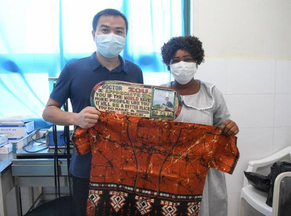 在醫療隊中,副隊長鄒志鴻已經是第二次作為醫療隊的一員援非了。這次他的助手叫西賽,33歲,但已經是醫院的“老資格”了。西賽看鄒志鴻略顯年輕,開始對他的醫術持保守態度,但后來她對鄒大夫的態度在工作中漸漸改變。塞拉利昂醫療條件相對較差,尤其在疫情期間。手術室經常缺水缺電,沒有足量的氧氣儲備,更別說藥物儲備了。在這樣的條件下,做全身麻醉都是一件困難的事情,因此很多手術無法進行。鄒大夫帶著西賽把呼吸機、制氧機有機結合起來,在有限的條件下限時開展全麻手術。因為有了這些成功的實戰經歷,西賽對鄒大夫的態度發生了巨大的變化,變得愛問問題了,只要是他的醫囑都會堅決執行。鄒大夫還購買了英文版麻醉和疼痛專業書籍,通過余暇時間給西賽授課。西賽非常感激這位中國醫生,在醫療隊即將離開之際,專門制作了禮物送給她的老師鄒志鴻。