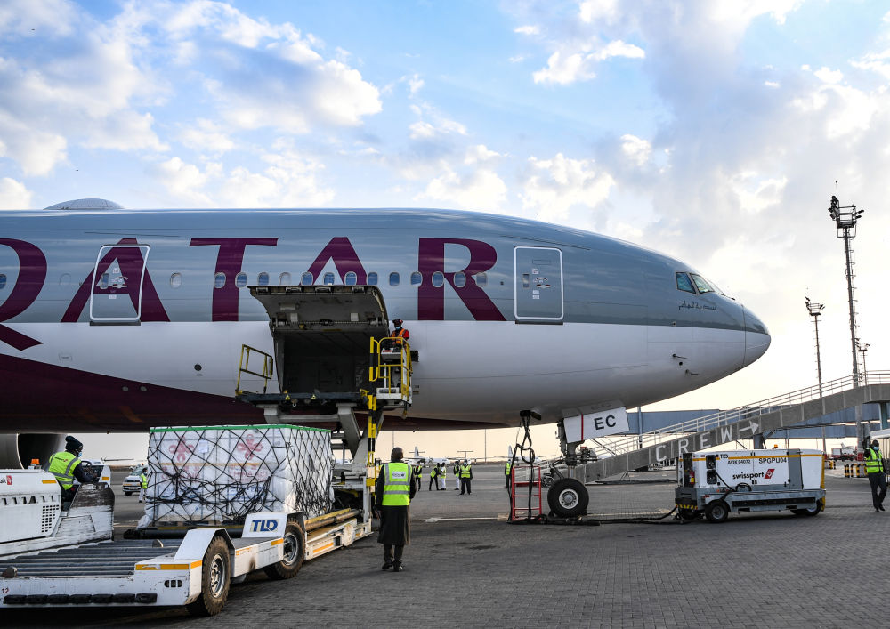 ↑2021年9月18日,在肯尼亞首都內羅畢,機場工作人員從飛機上卸下中國政府援助的新冠疫苗。