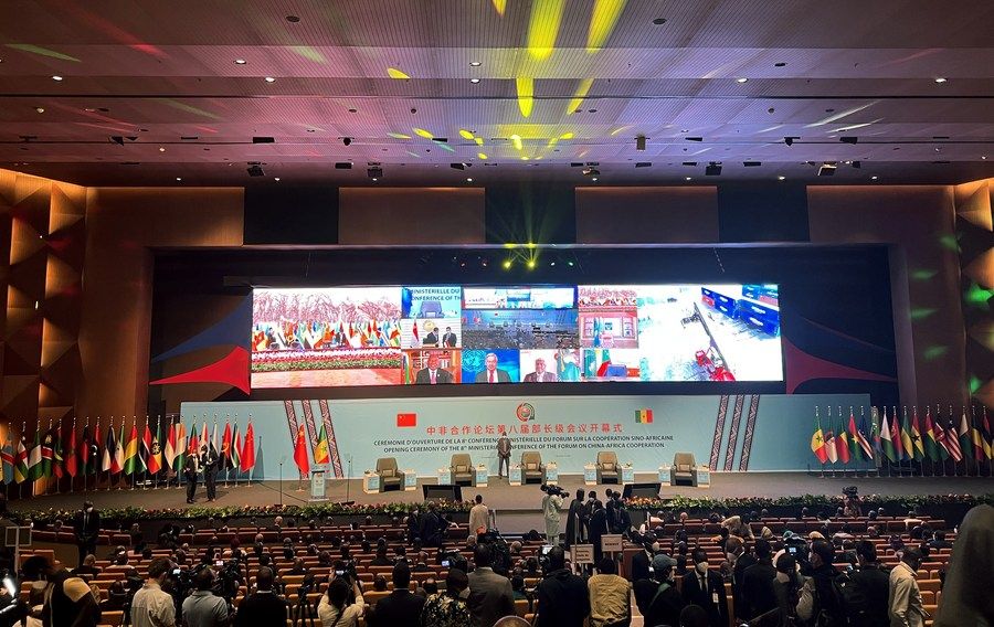 ↑2021年11月29日,在塞內加爾首都達喀爾,與會代表步入中非合作論壇第八屆部長級會議開幕式現場。
