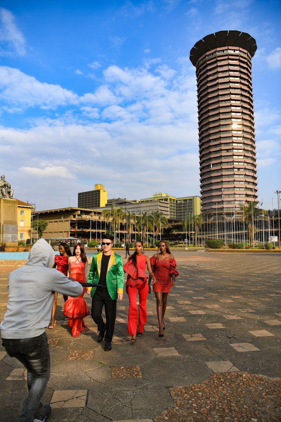 ↑2021年9月29日,在肯尼亞首都內羅畢,王垚(中)和助理們在拍攝短視頻封面照片。