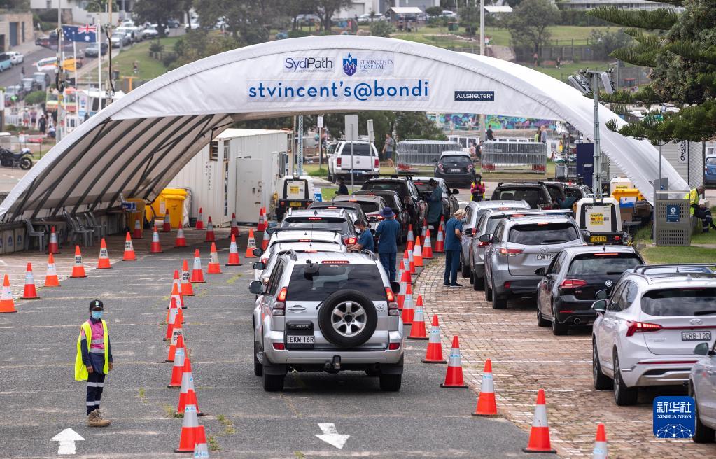1月9日,車輛在澳大利亞悉尼一處新冠檢測點排隊。