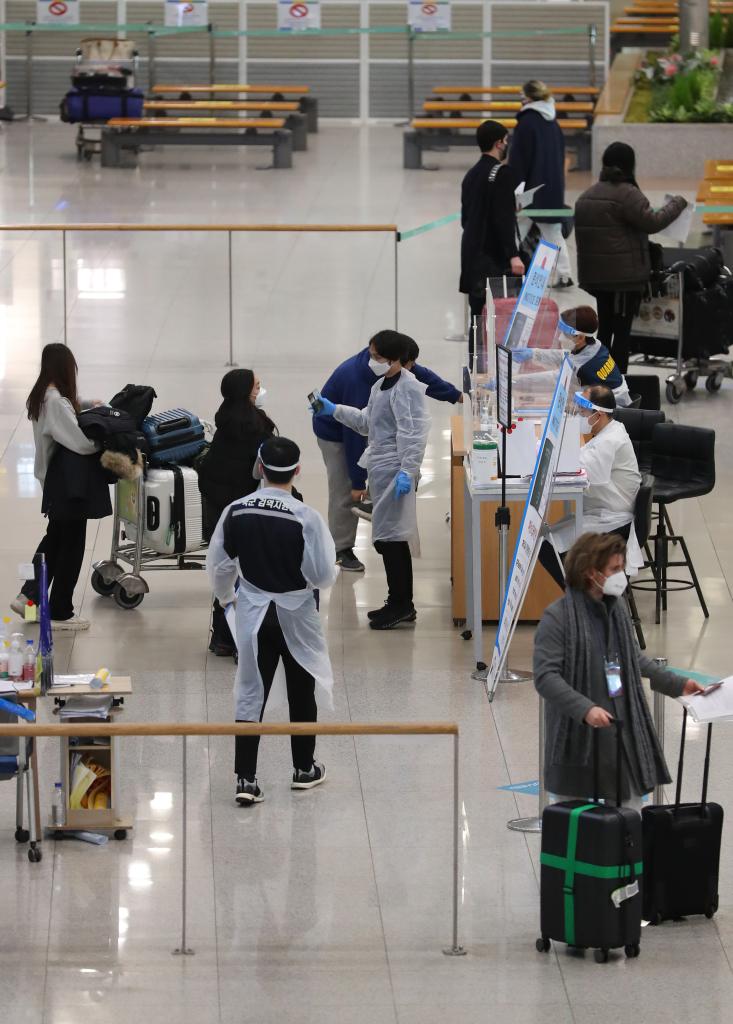 2021年12月29日,海外入境人員進入韓國仁川國際機場1號航站樓到達大廳。(新華社/紐西斯通訊社)