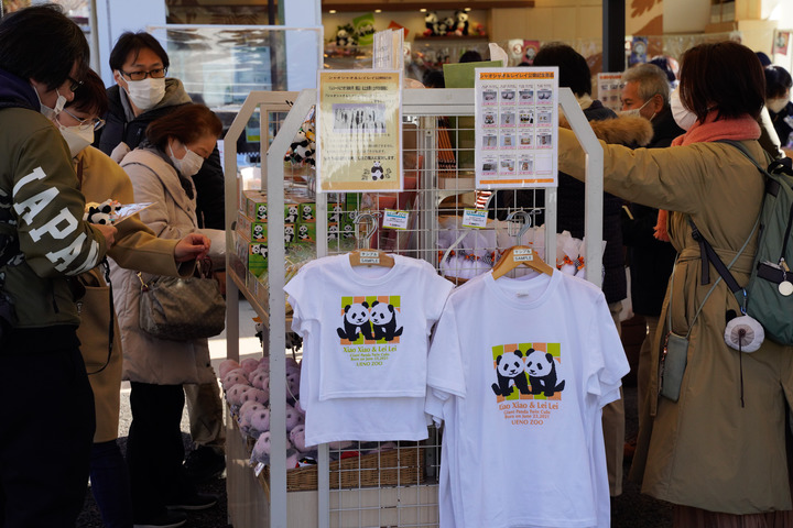 1月12日,游客在日本東京上野動物園參觀大熊貓后選購大熊貓紀念品。新華社記者張笑宇攝