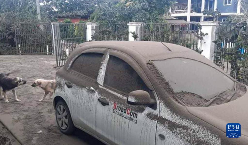 這是近日在湯加首都努庫阿洛法拍攝的被火山灰覆蓋的汽車。