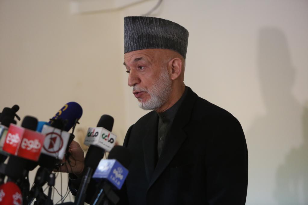 2月13日,阿富汗前總統卡爾扎伊在喀布爾舉行的記者會上講話。卡爾扎伊說,阿富汗要求處理“9·11”事件受害者索賠訴訟的美國法庭不執行拜登的行政令,而將阿富汗央行資產返還給阿民眾。新華社發(塞夫拉赫曼·薩菲攝)