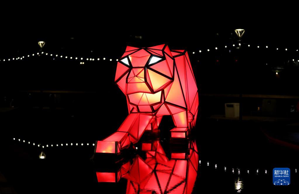 2月17日,在英國倫敦,慶祝中國虎年的燈光藝術裝置在巴特西發電站燈光節上展出。