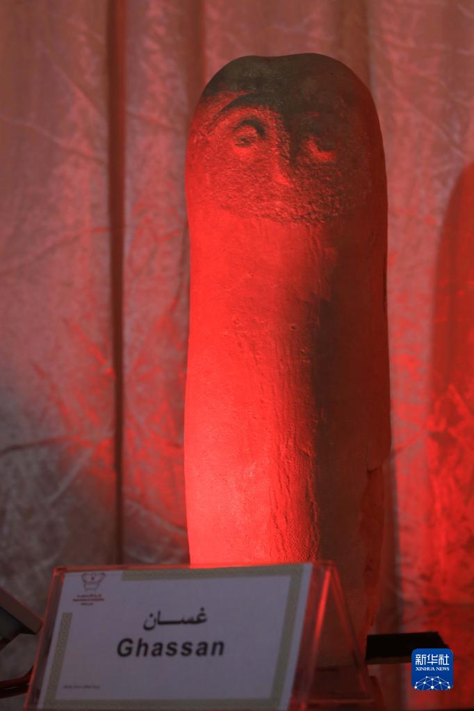 這是2月22日在約旦首都安曼拍攝的雕刻著精細的人物形象的石碑。
