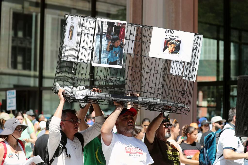 圖為2018年6月30日,人們在芝加哥參加反對移民執法政策集會。美國政府4月推出“零容忍”的強硬移民執法政策,規定所有成年非法入境者被捕后將一律面臨拘押和起訴,他們的子女則被安置在其他地點,造成“骨肉分離”。6月底,美國多座城市舉行700多場集會,要求邊境執法人員結束“骨肉分離”式執法,使分離的家庭盡快團聚。新華社記者汪平攝