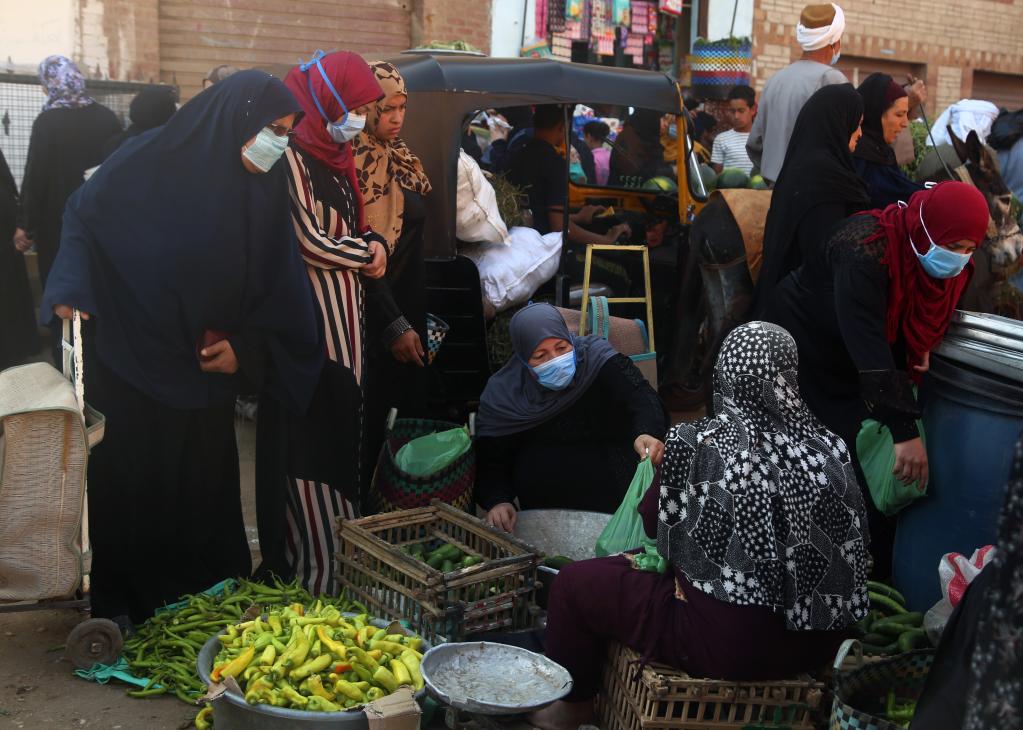2020年6月6日,在埃及吉薩省阿亞特,人們戴著口罩在周六集市上選購蔬菜。新華社發(艾哈邁德·戈馬攝)土耳其政府也已宣布降低基本食品增值稅,同時大幅提高每月最低工資和退休人員養老金。