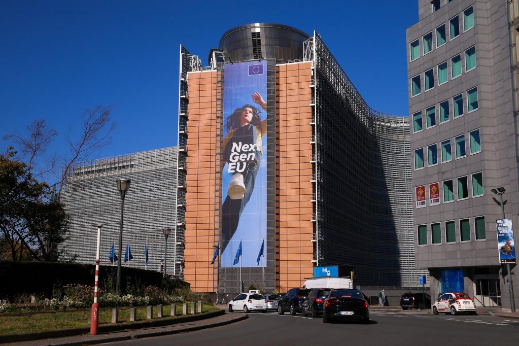 2021年10月8日,車輛經過比利時布魯塞爾的歐盟委員會總部大廈。新華社記者鄭煥松攝