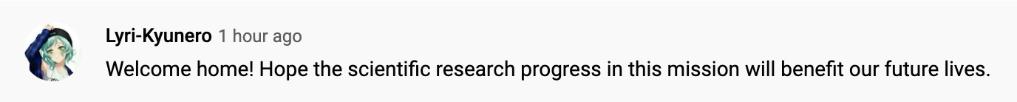 “歡迎回家!希望此次任務中的科研進展可以造福我們的未來?!?/span>