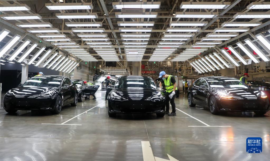 工作人員在特斯拉上海超級工廠內作業(2020年11月20日攝)。新華社記者 丁汀 攝