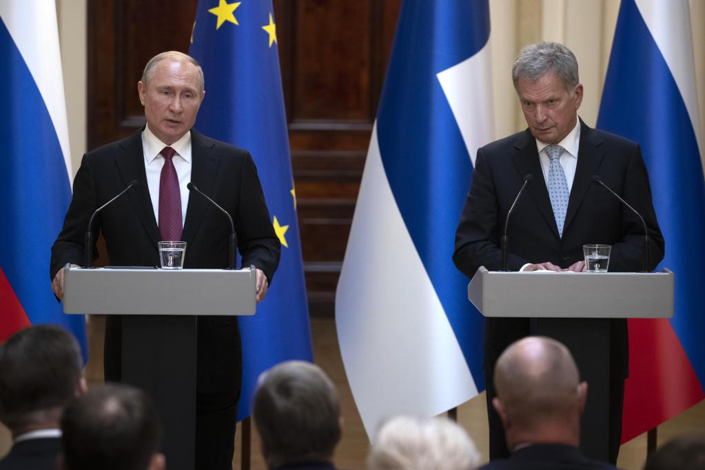 2019年8月21日,在芬蘭赫爾辛基,俄羅斯總統普京(左)與芬蘭總統尼尼斯托出席聯合記者會。新華社發(馬蒂·馬蒂凱寧攝)