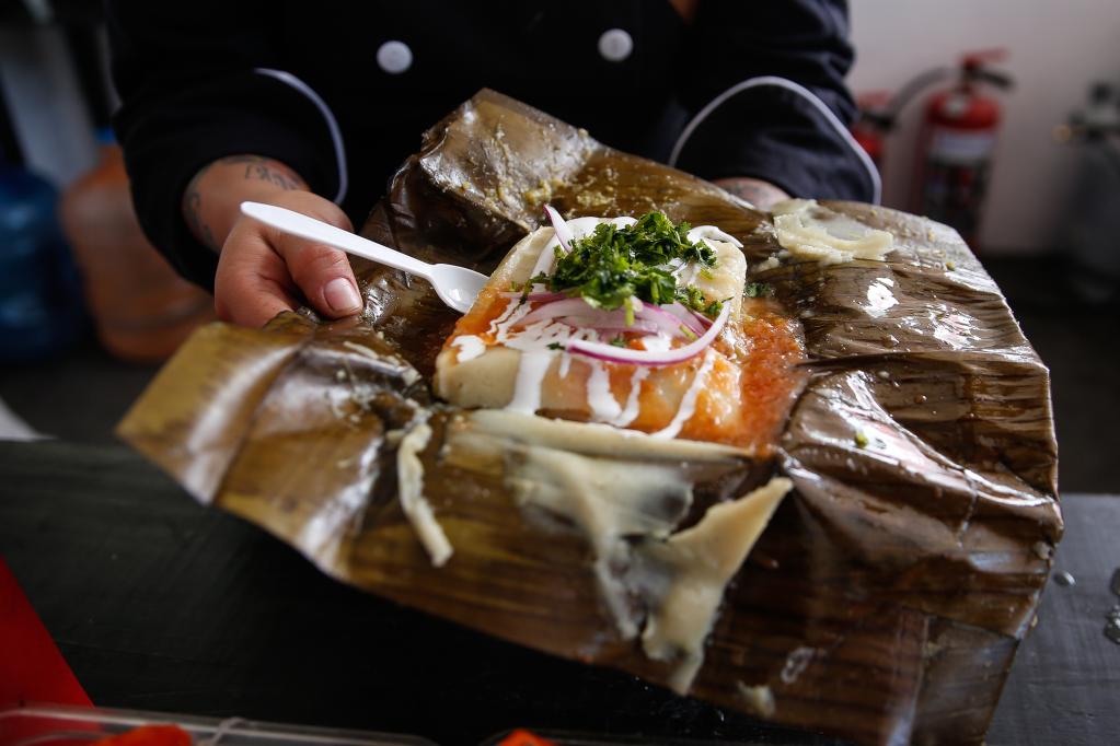 2020年1月30日,在墨西哥首都墨西哥城,商家在塔瑪爾節活動上展示一款塔瑪爾。新華社發(弗朗西斯科·卡涅多攝)