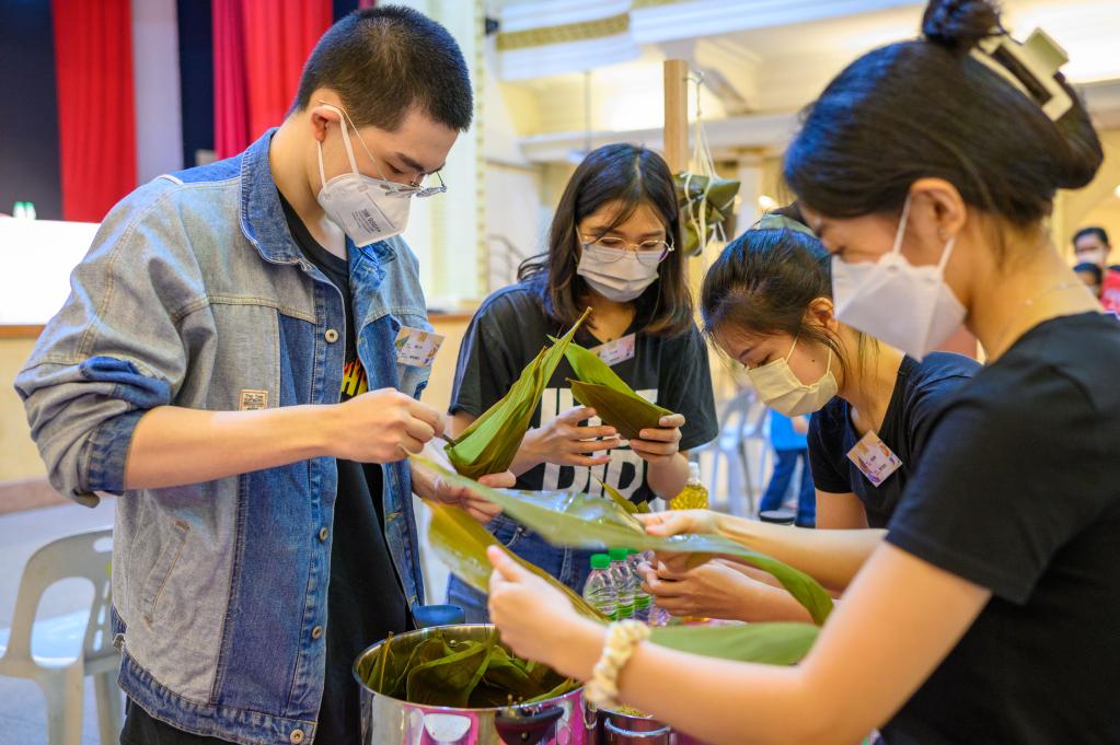 來自馬來西亞全國16支隊伍參加了“裹粽子”比賽,選手大部分是高校學生。通過制作不同口味的粽子,年輕人親身體驗著中華美食文化。