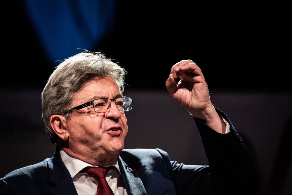 6月19日,法國極左翼政黨“不屈法國”領導人梅朗雄在巴黎舉行的選后集會上講話。(新華社發,何塞·博薩斯攝)