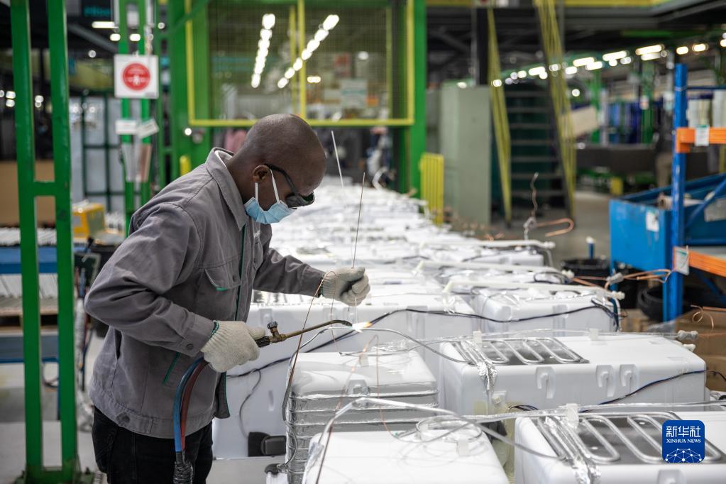 2022年6月1日,當地員工在南非開普敦海信南非工業園的冰箱生產線上工作。 新華社記者 呂天然 攝