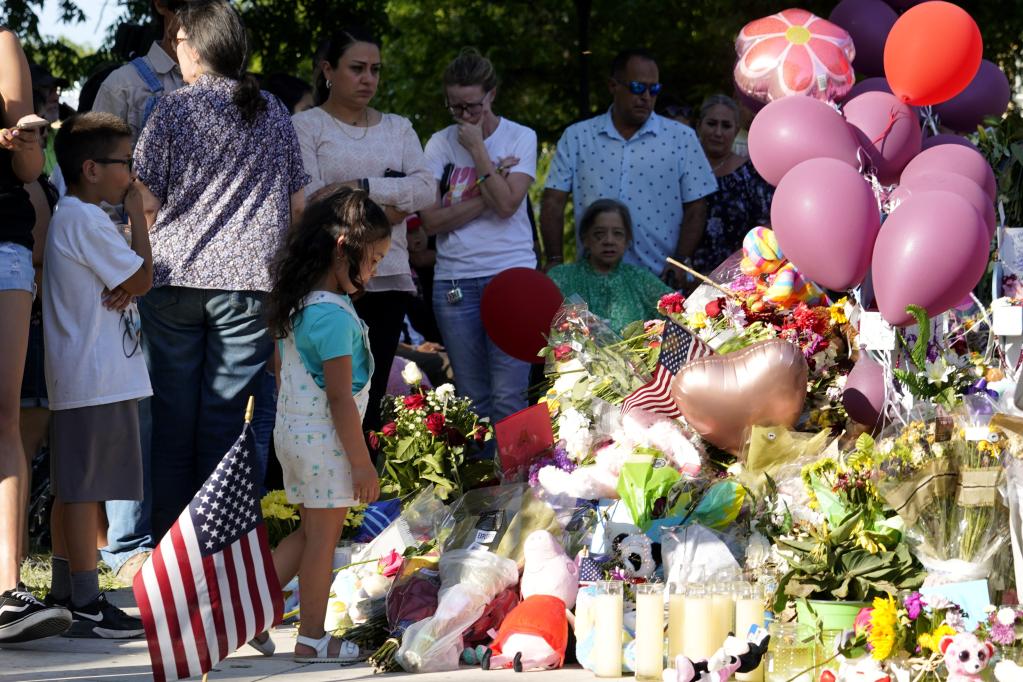 5月28日,在美國得克薩斯州南部尤瓦爾迪市的城市廣場,市民哀悼槍擊事件遇害者。新華社記者吳曉凌攝