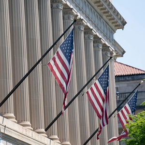 這是4月28日在美國華盛頓拍攝的美國商務部大樓。(新華社記者劉杰攝)